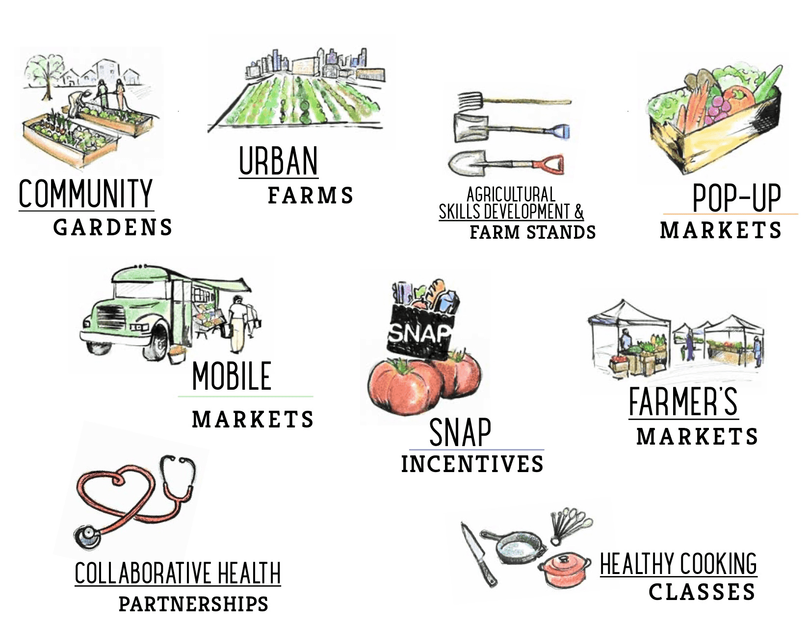 We support nonprofit organizations in local communities that are helping to expand healthy food access. This includes community gardens, mobile markets, healthy cooking classes and more. Learn more about the types of projects we support and what we look for in a partner: